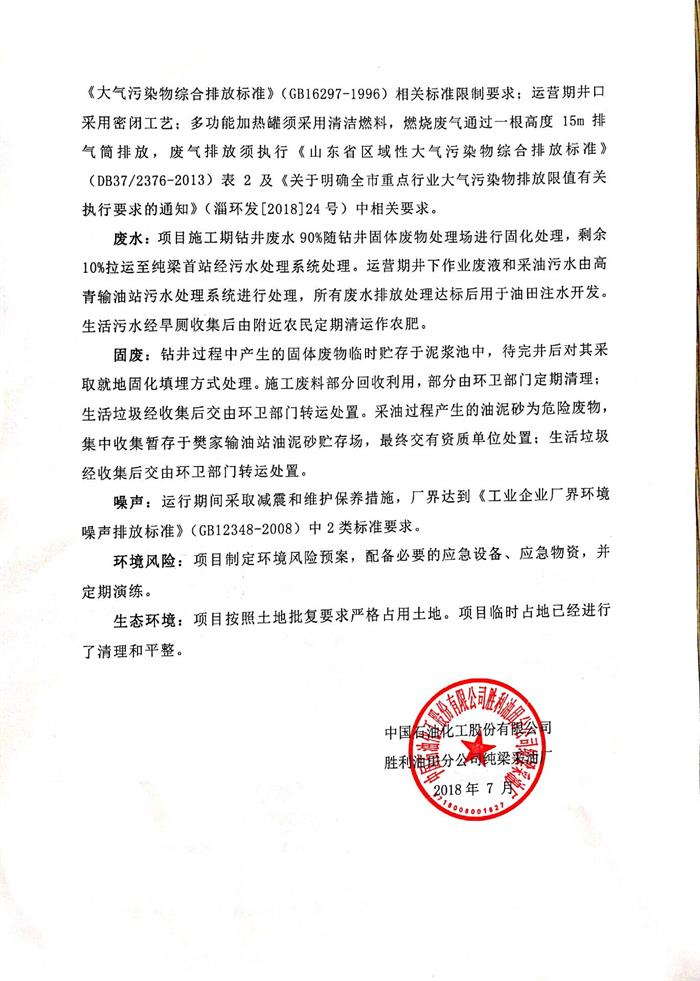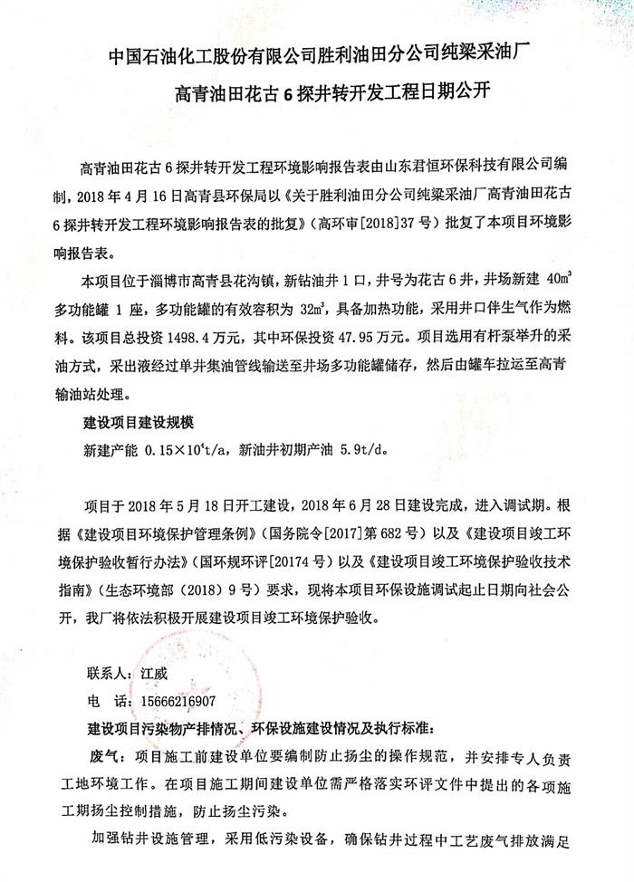 中國石油化工股份有限公司勝利油田分公司純梁采油廠高青油田花古6探井轉開發工程日期公開